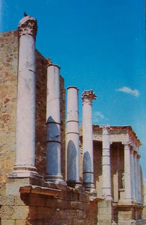 Roma levantó en España ciudades más grandes que Mérida, pero ésta fue aquella cuyos monumentos se han conservado mejor, y una visita a su museo equivale a hacer un viaje a la Roma antigua. Abundan los edificios importantes: un gran circo con capacidad para treinta mil espectadores, donde se celebraban carreras de carros, y que podía llenarse de agua para organizar combates navales; un anfiteatro bien conservado, con catorce mil asientos, donde los esclavos eran arrojados a las fieras; un acueducto de proporciones gigantescas, y numerosos arcos y monumentos conmemorativos. Hay tres cosas, sin embargo, que merecen especial atención. El teatro, que sabemos que fue construido en el segundo año de la existencia de la ciudad, tiene que haber sido un edificio de gran belleza; era un semicírculo perfecto, con cuatro sectores de asientos, separados entre sí y ascendentes. El proscenio abarcaba todo el diámetro del círculo y estaba rematado por cinco púlpitos dobles o foros, que descansaban sobre numerosas columnas de mármol blanco. Durante cosa de dieciséis siglos, este teatro yació, olvidado, entre escombros, que contribuyeron a conservarlo, de modo que cuando, en este siglo, se comenzó a excavar en serio la zona, la mayoría de las piedras y columnass aún existían, siendo el único problema levantarlas y ponerlas de nuevo en su sitio original. Hoy en día, el teatro es una obra maestra de la arquitectura imperial, y se puede uno sentar en su bello semicírculo e imaginar lo que debió de haber sido cuando se representaban en él las obras de Plauto y Terencio. O sube uno al foro central, donde las estatuas de los dioses decoran de nuevo el rostrum, e imaginar la vida de un actor romano en gira artística por las provincias. Este teatro es un tesoro nacional español está siendo usado de nuevo para espectáculos dramáticos.