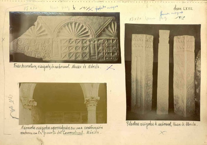 "Se agrupan aquí las antiguedades cristianas, desde las primitivas y las correspondientes a los tiempos de la dominación visigoda y aun las pertenecientes a las supervivencias del mismo carácter durante la dominación mahometana, para componer y dejar completo el cuadro de un estado social, que si se apvecho como era natural de los progresos materiales logrados por la gran civilización romana, en cambio alimenta su espíritu con una nueva y santa creencia; y no tomamos en cuenta el arrianismo ni otros síntomas de la crisis religiosa de aquellos primeros siglos porque las huellas de uno y otros no se advierten en los monumentos." (José Ramón Mélida. Catálogo Monumental y Artístico de la Provincia de Badajoz, Tomo 2, pág. 5).